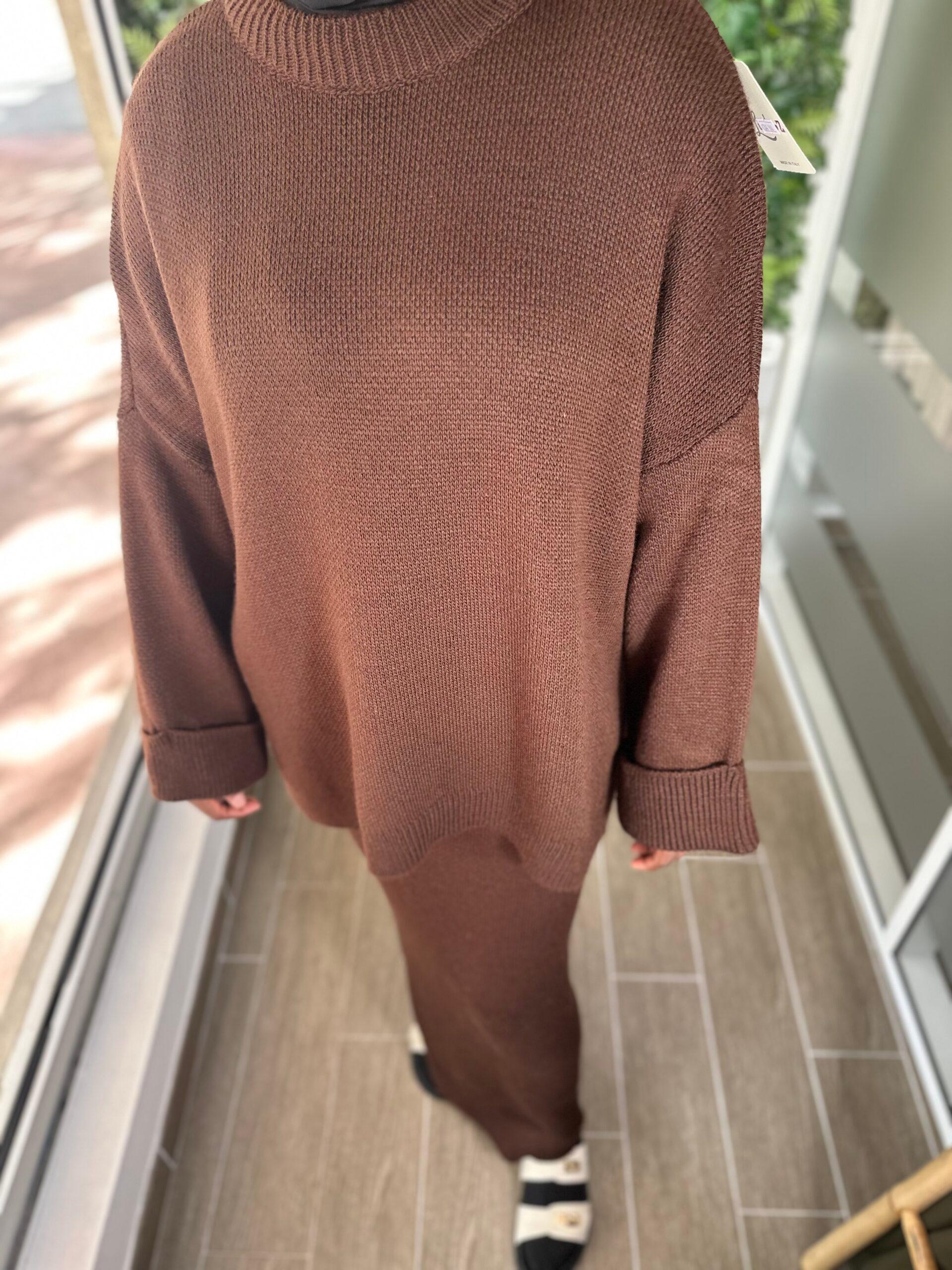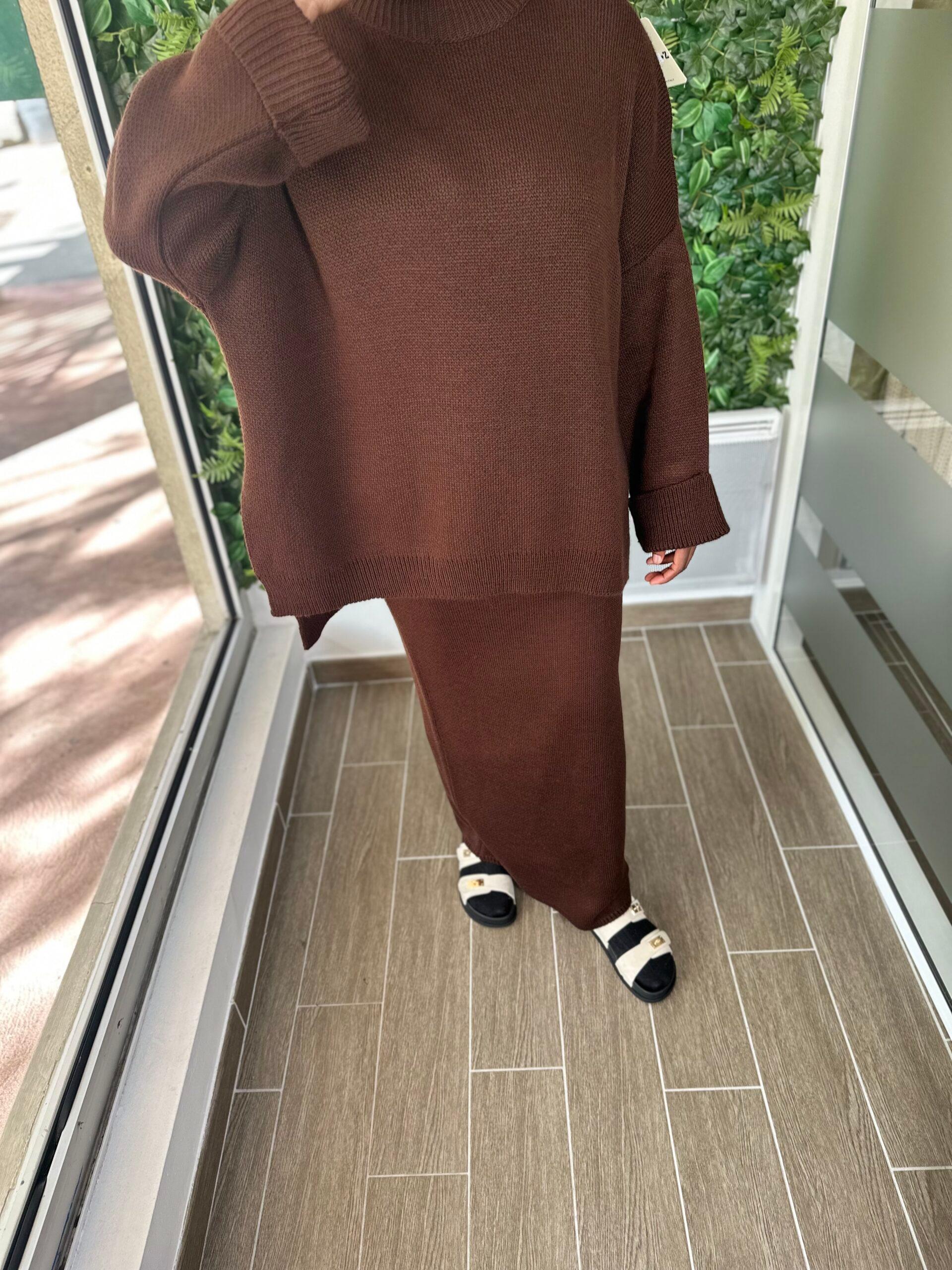Un ensemble en maille chic et confortable, parfait pour affronter les journées fraîches avec élégance.