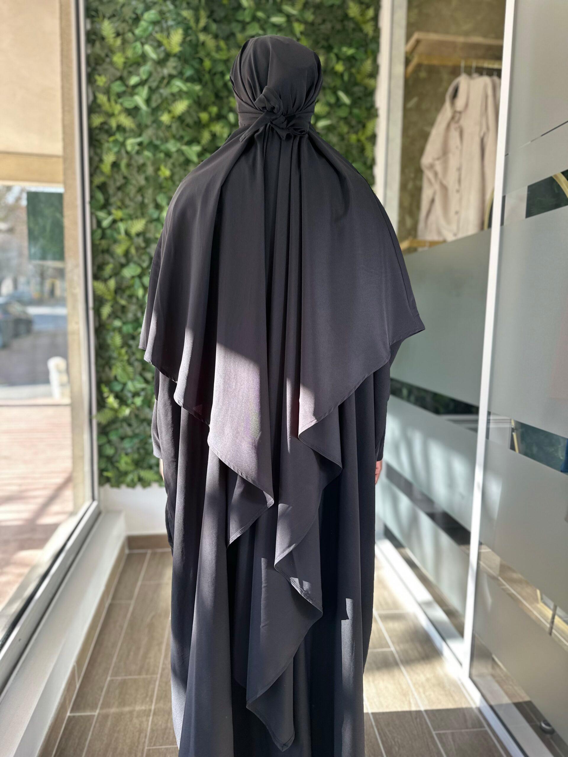 Ce khimar court est idéal pour celles qui recherchent à la fois élégance, couvrance et légèreté. Facile à enfiler grâce à son bandeau intégré, il épouse parfaitement la tête et reste bien en place. Sa coupe en pointe à l’avant et à l’arrière donne un rendu fluide et structuré. Une pièce incontournable du dressing pudique.