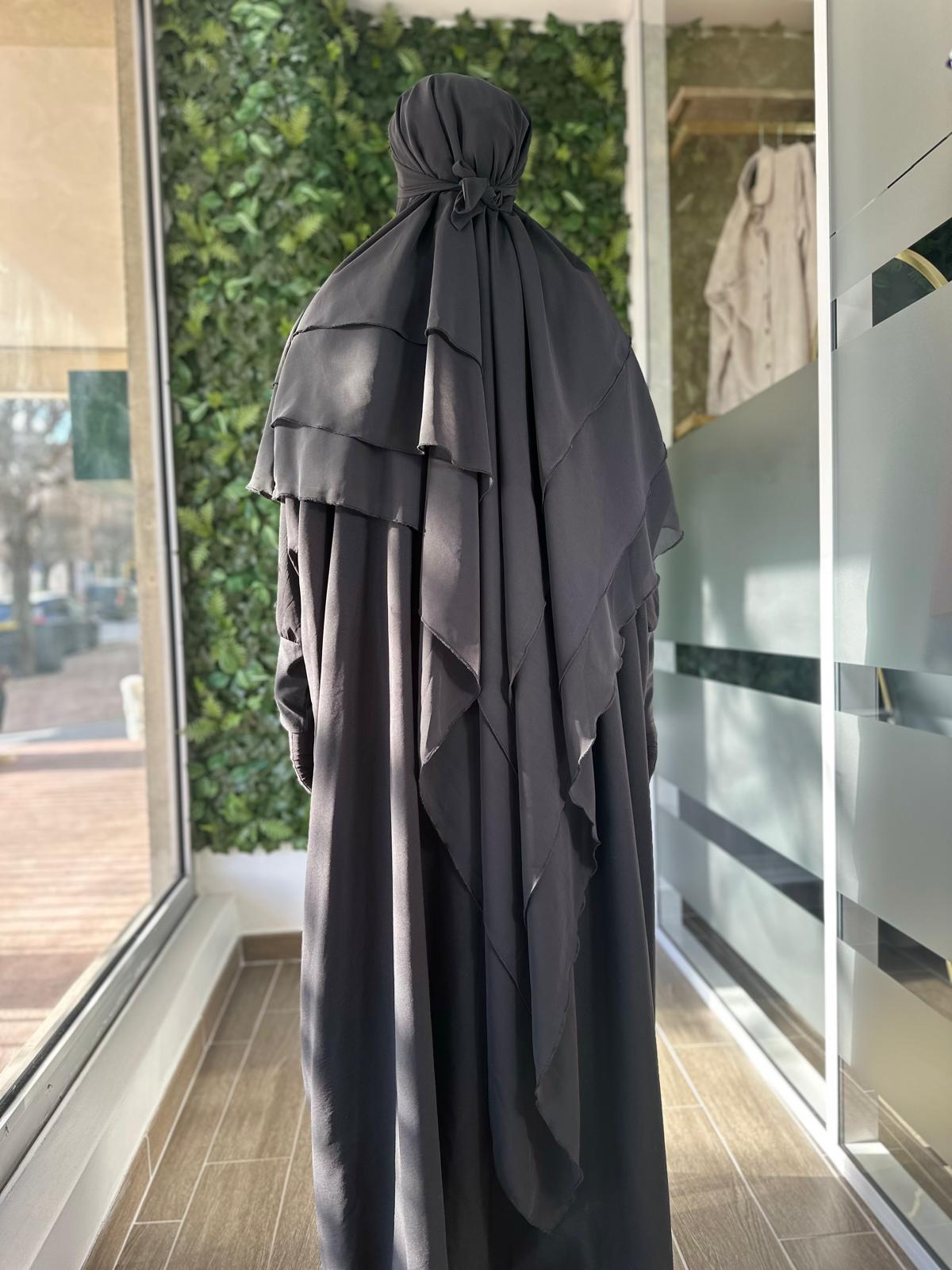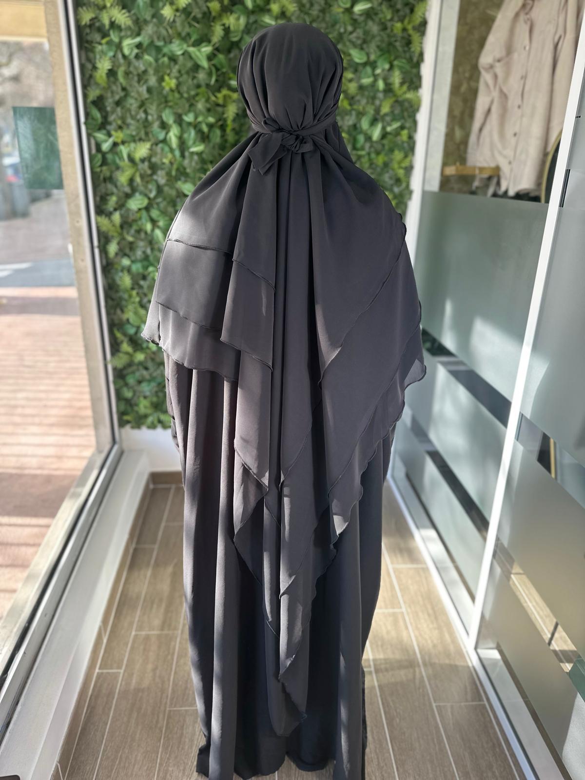 Ce khimar innovant est conçu pour allier style, simplicité et couvrance. Grâce à sa base type hijab intégrée, il offre un enfilage rapide et un maintien optimal sans ajout de bonnet supplémentaire. Son design fluide s’adapte à toutes les morphologies tout en garantissant une couvrance parfaite du haut du corps.