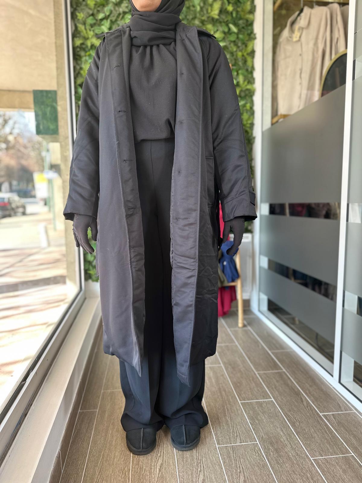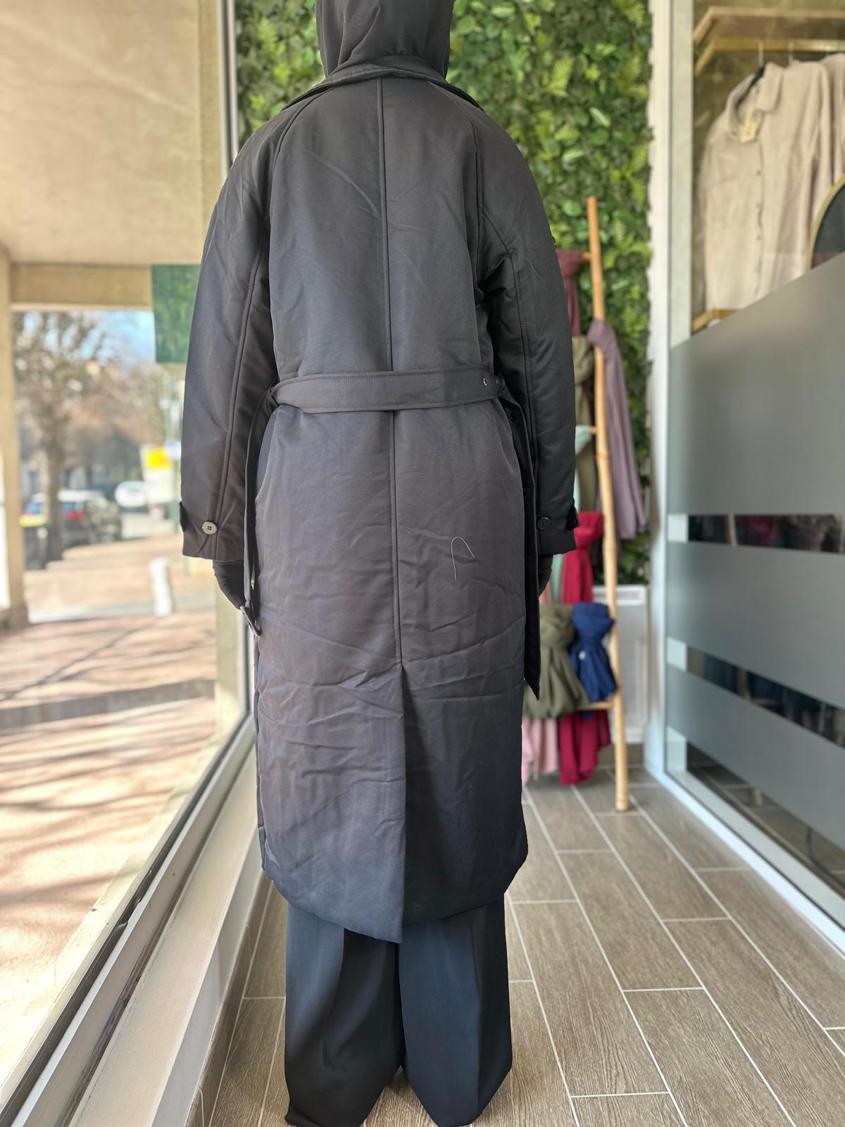 Ce manteau long matelassé est l’allié idéal pour affronter les journées froides tout en gardant une allure sobre et soignée. Sa coupe droite et son tissu lisse offrent un rendu structuré, tandis que la longueur protège efficacement du vent et du froid. Facile à associer, il convient parfaitement à une tenue noire classique.