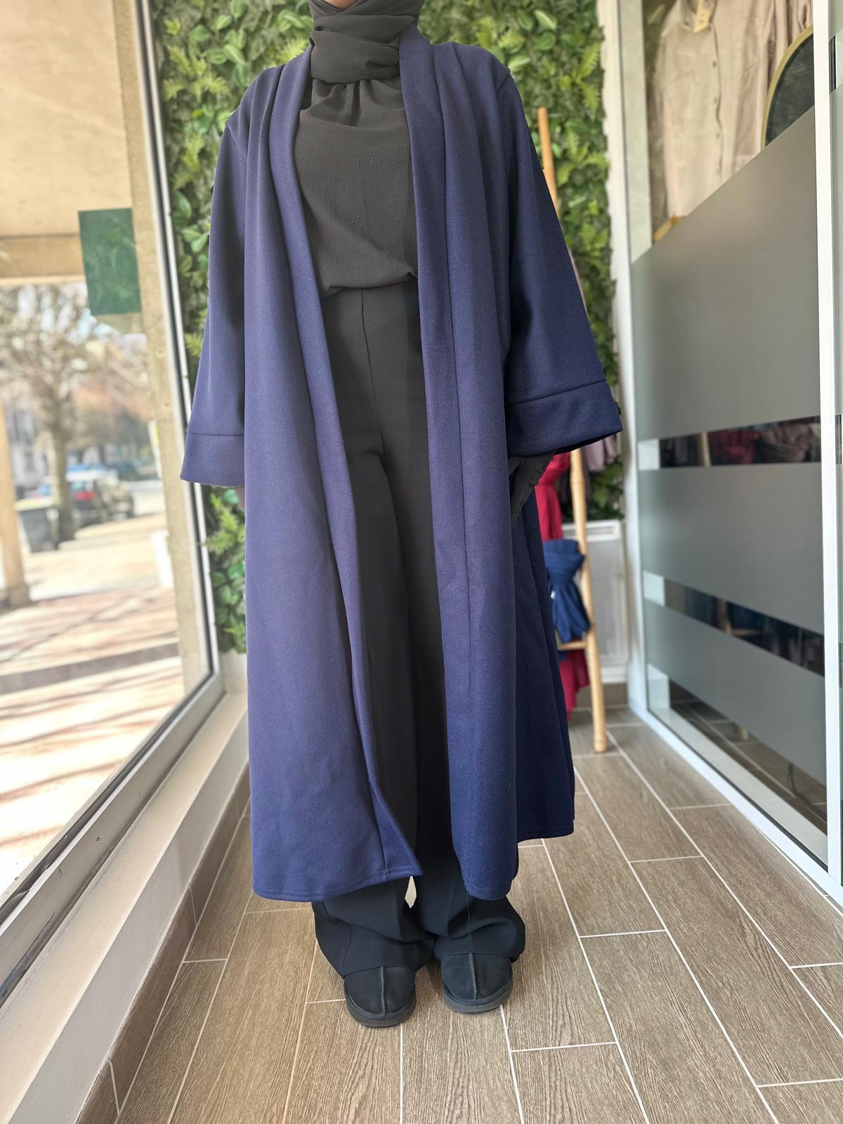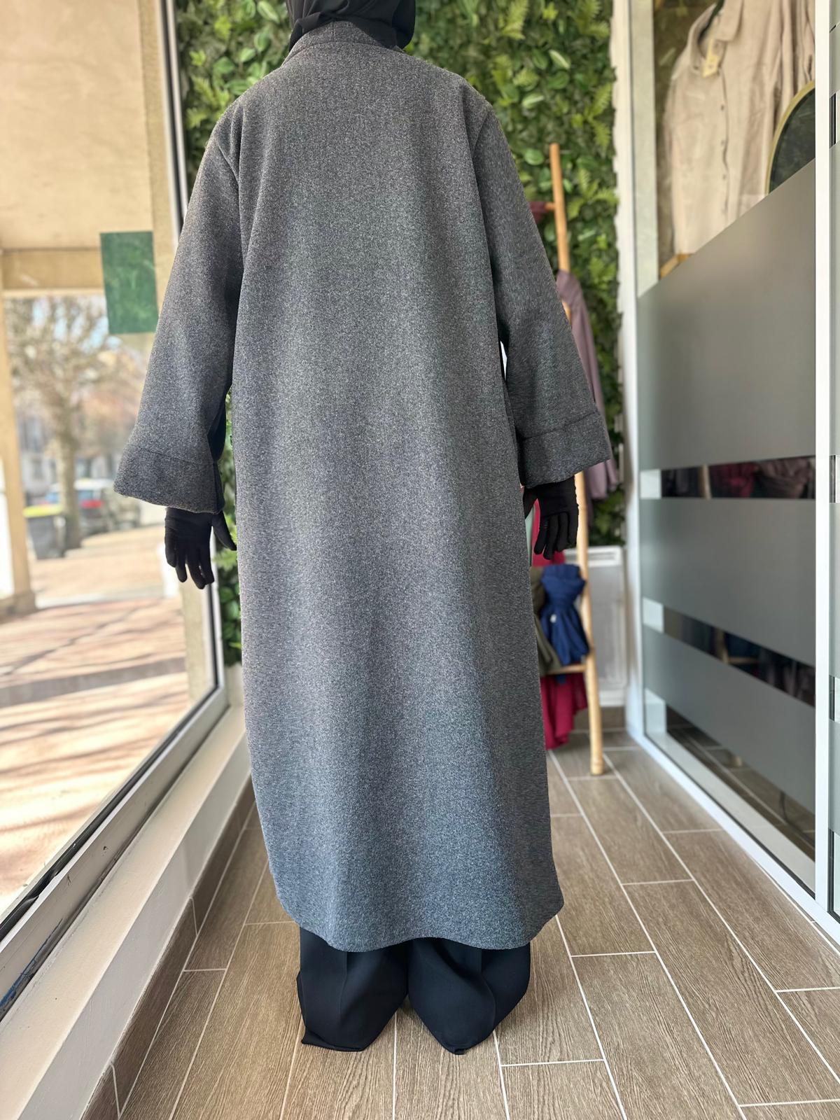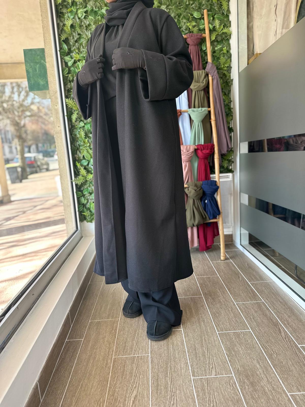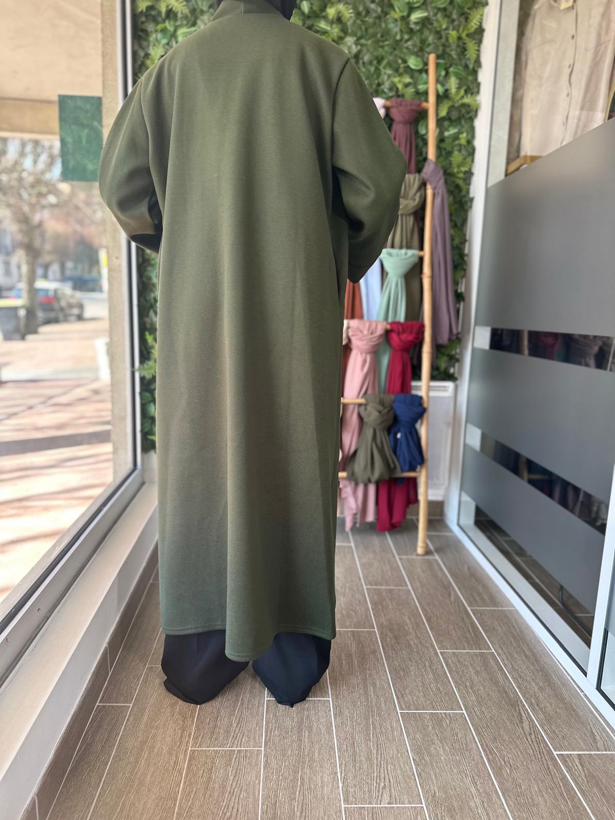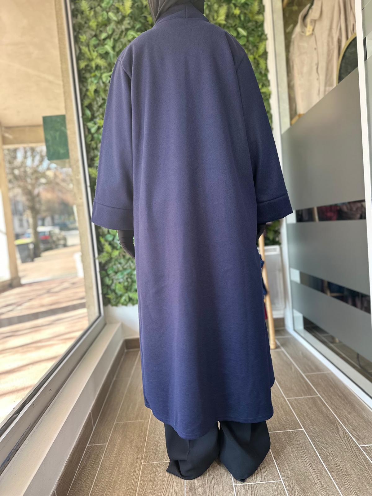 Ce manteau long fluide au tomber élégant est parfait pour la mi-saison ou les journées fraîches sur une abaya, une robe ou un ensemble. Avec sa coupe ample et son tissu léger au toucher doux, il allie confort et raffinement. Il s’enfile facilement sur toutes vos tenues et apporte une touche de classe sans effort.